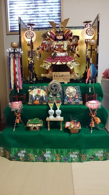 五月人形です! 今回、男の子が生まれましたからネ 実にコの人形ゎ息子が生まれた時に女房の実家から贈られた物です。何十年か振りのお披露目です(*^_^*)
