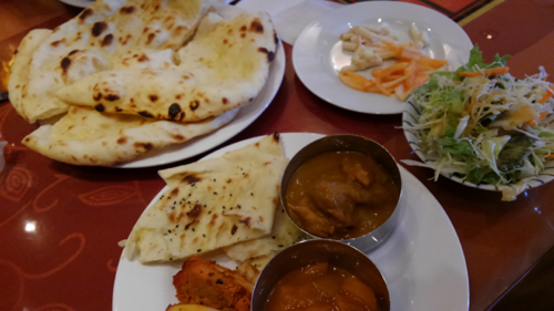 インドのわりにゃ辛さが足んなかったけどレッドチリパウダーも備えてあったしチキンやサラダや飲みモンなんかも好きなだけ食べれたから満足でしたネ(^^)