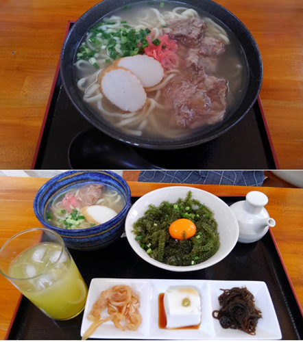 ソーキそばに海ぶどうとくれば沖縄ですネ ジュースなんてシークワーサーですョ もろ沖縄デス