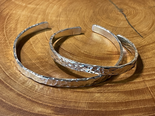 シルバーバングル作成コースなり。人気の叩き出しでお気軽に作って頂けますョ(*^^*) 是非体験してみて下さい(^^)/ もちろん完成品もお買い求め頂けますョ(^^)v