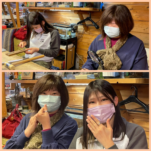 シルバーアクセサリー体験教室に来て頂きました一見、母娘⁉に見えますが職場の仲良しさん同士でリング作成して頂きました(*^^*)