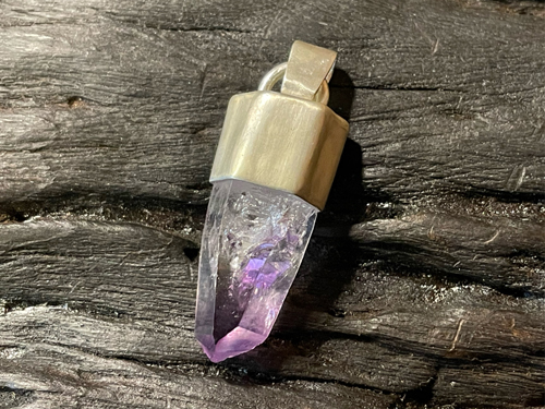 ヤロゥ君、天然石が大好きなのでアメジストを使いペンダントトップの完成となりました。初めてでもコンナ良い作品が出来上がりますョ(^^)v