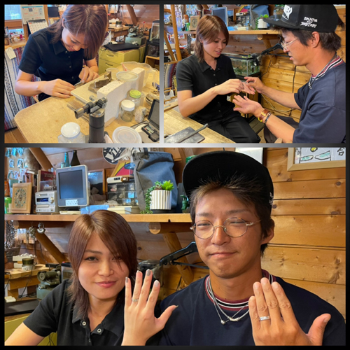 なんと結婚記念日にということでペアリング作成を!! まぁ人を外見で判断しちゃいけませんけどネ 今回、当店を見つけて予約したのゎ旦那のほぅだとか!やるな( ̄ー ̄)