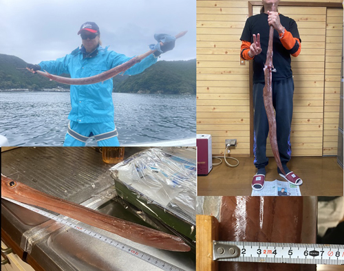 超が付くほどの巨大アカヤガラなり。私の身長ゎ180cmあるんですョ 持ち上げると口元まである長さ(^_^;) 幅も5㎝超えてるし。なんと155㎝もありました(*^^*)