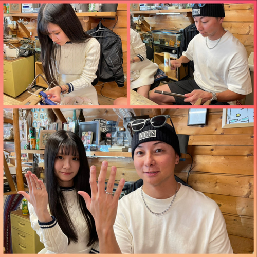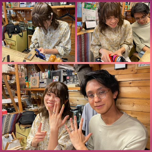 お二人でペアリングを作りあいっこして頂きました(*^^*) やっぱ関西人だけにノリもよくってコチラも楽しませていただきました(^^)v お幸せにして下さいネ(^^)/