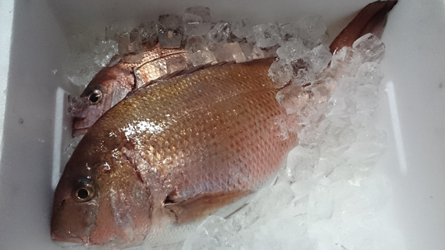 なんとも食べごろサイズの綺麗な真鯛がっ(#^.^#) 行けなかった私のためにメンバーが釣りたての魚を届けてくれました(*^_^*)