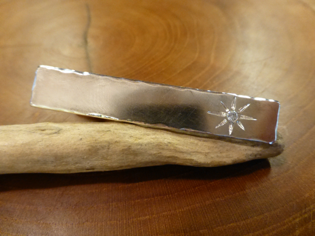 ネクタイのタイ留めです。オーダー主サンゎ当店近くの自動車ディーラーの店長サン。バックルやウォレット等、沢山当店の物を身に着けて頂いてます(*^_^*)