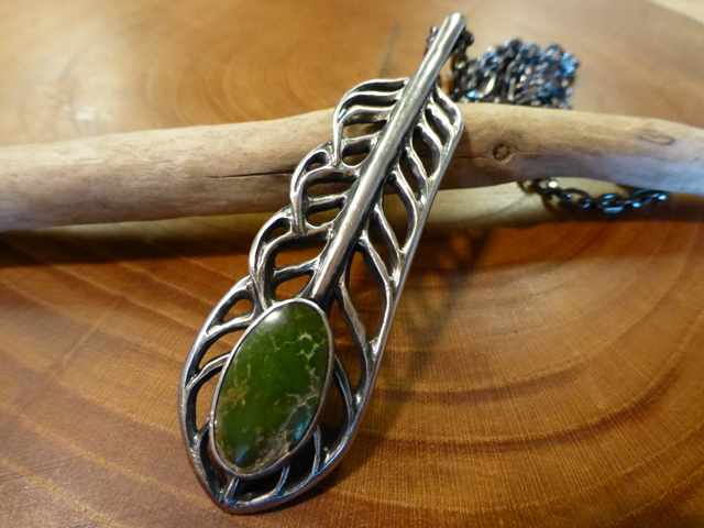 石も、しぶい色でフェザーもアンティーク仕上げにし、それに似合うようにチェーンも燻しオーダー主サンのイメージにピッタリと出来上がりました!