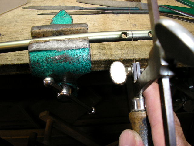 んなモン傍からみりゃサンダーでガガッと切りゃぁエェがね、なぁ~んて思うかも知れませんが、スベってキズ付くのもダメだし、熱で色が変わってもダメなわけですョ だから、ただひたすら糸ノコ使ってゴシゴシと。