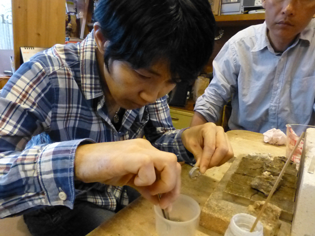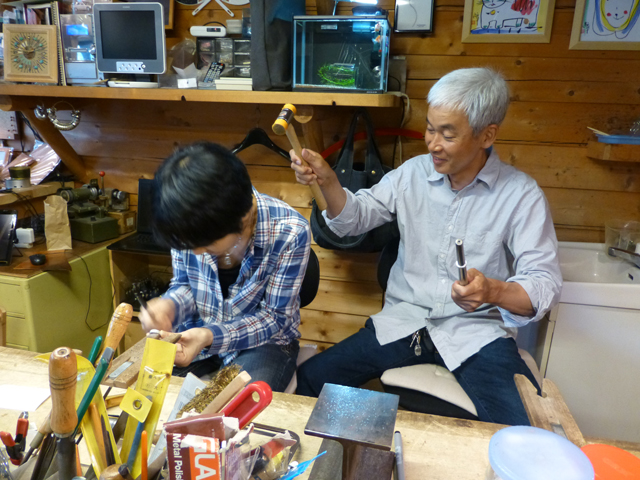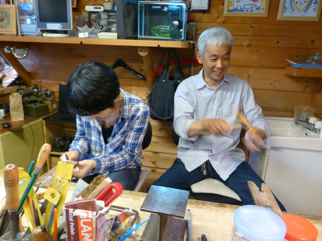 とまぁ、のっけから変な顔文字ばかりでなんですが今回ゎそんな暗い日々を打ち消すかの、お二人が銀細工教室に!
