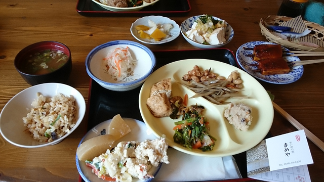レストランの中ゎ農家をイメージした造り。お豆やら、おからを使った料理が沢山・・・てほどもないけど並んでます(^_^;)