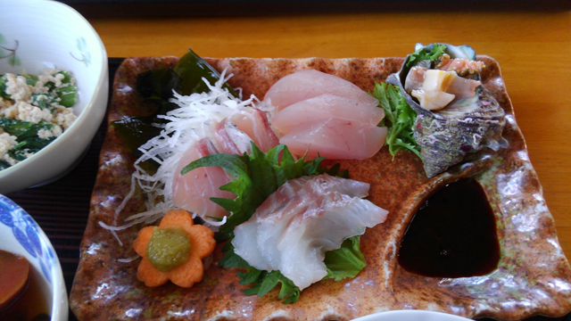 コの日ゎシビにハマチにグレ(メジナ) そしてサザエの刺身まである!! しかも美味ぁ~(*´▽`*) ゴハンが進むぅ~(*´▽`*) 思わずゴハンお代わりしたしぃ~^m^