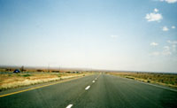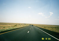 遥か彼方の地平線まで、真っ直ぐに道路が続いてます。その地平線まで到着すると、そこは小高い丘になっており、そしてまた真っ直ぐに道が続いているだけで周りはタダの荒野です。