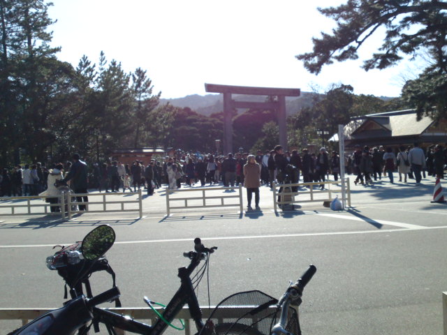 宮川を眺めながら走るなんて始めてかも・・・自転車ゆえですネそして、第一目的地“伊勢神宮外宮”に到着デス