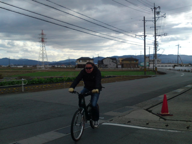 私がホンマに自転車で走ってる証拠写真を撮らせる。しかし寒そうな空