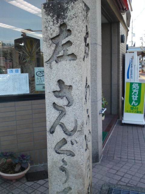 コの後、直ぐに松阪肉で有名な和〇金の横を通り過ぎると、歴史を感じられる道標があります。