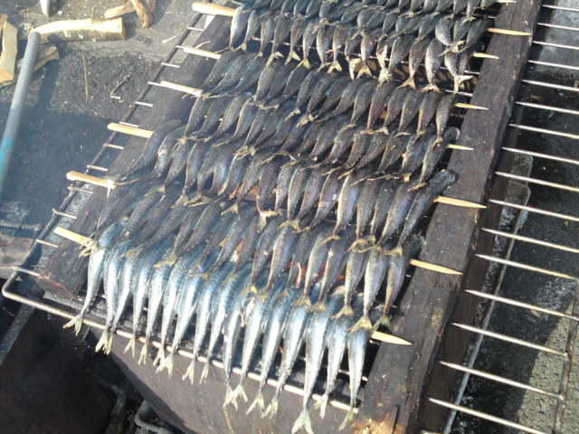 “あぶり”と呼ばれる郷土料理でして今の時期だけでココだけしか作られていません。小魚(今の時期は小サバ)をサクラの木で燻す燻製料理デス 私は昨年、ココを新聞で見てヒジョーに食べたくなり連絡を入れたのですが不漁でその時は無く、一年間辛抱しました。