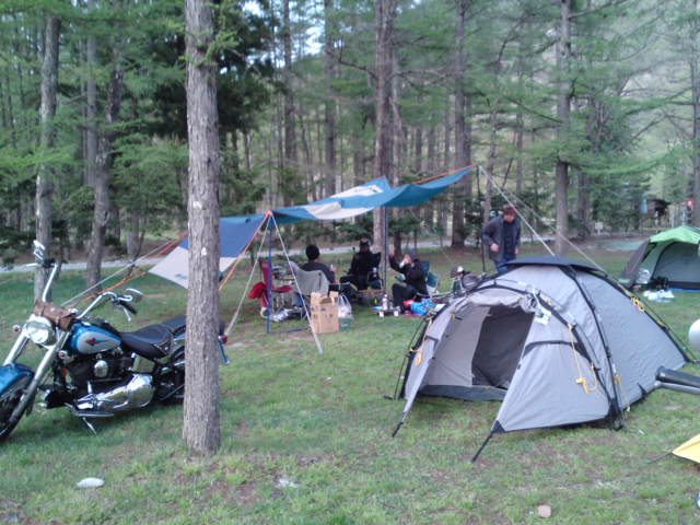 コの後キャンプ場へと向かいテント設営に。林の中のホンマ静かなキャンプ場デス
