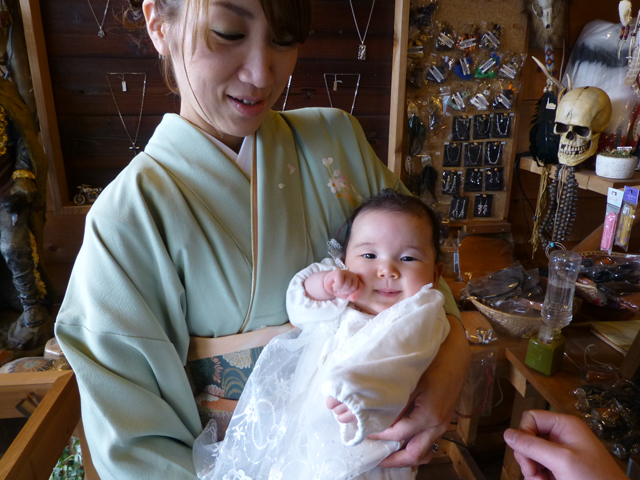 そんな孫も、生まれて早100日。そぅデス 本日ゎ日柄も良いことで、お宮参りへとやって来たとで晴れ着姿を見せに来てくれました!