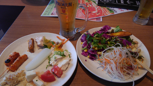 食べ放題+ドリンク飲み放題(別料金)で、真昼間からのビールゎホント美味い^m^