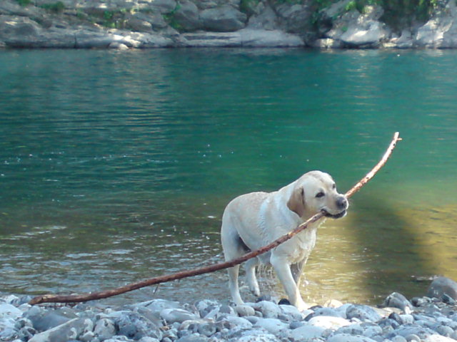 もぅ川に飛び込み、ご機嫌なクーパー。