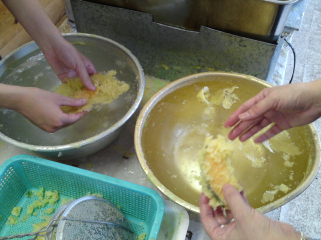 突然始りましたが、お料理教室のよぅに見えますが、何も郡上八幡までワザワザ料理を作りに来たわけじゃありません。それに写真見ても何か天ぷら作ってますが油の中に手が入ってるのがおかしい・・・