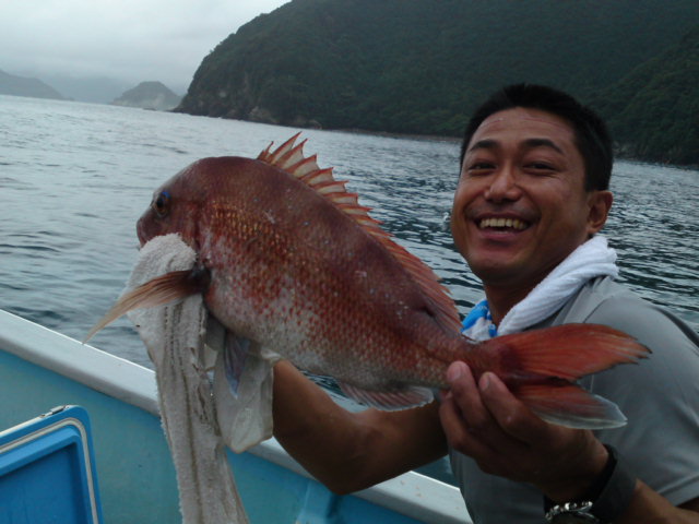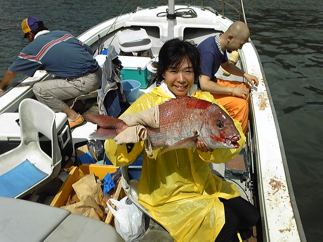 「こんな風にポンピングしながらリールを巻くのョ」と説明もし、釣れ上がったのゎ一回目が40cmオーバーに二回目が、なんと60cmの真鯛。もぅネ 私の面目が立ちましたョ 身なりゎ怪しい中○人のよぅですがネ