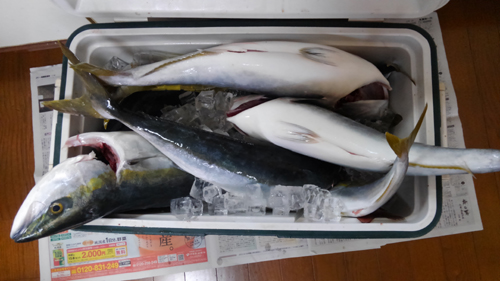 60㎝オーバーのワラサが10本。ツバス&ハマチ15~8?でクーラーがオーバーフロー!!