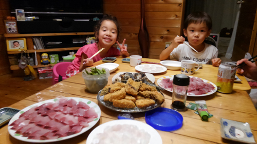 でもまぁ、その後に飲む一杯と家族の喜ぶ顔を見て刺身を摘まむといっぺんに疲れが吹き飛びますネ( ̄ー ̄)ニヤリ