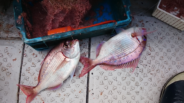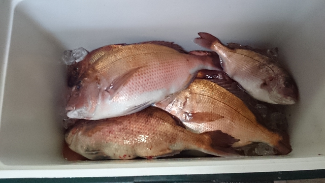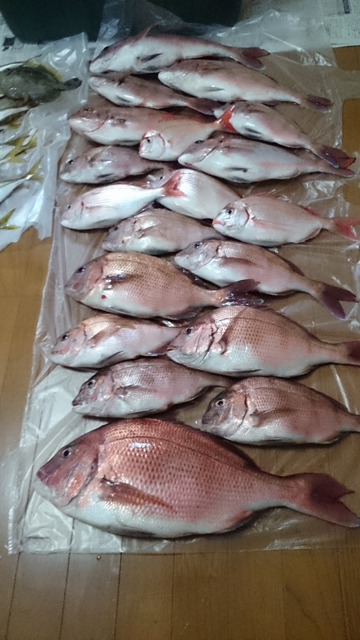 真鯛が調度食べごろSize35~45cmくらいのが6枚と、まずまずの釣果(*^_^*) 今の時期ゎ桜鯛と呼ばれててホント桜色してるのが釣れるんですョ