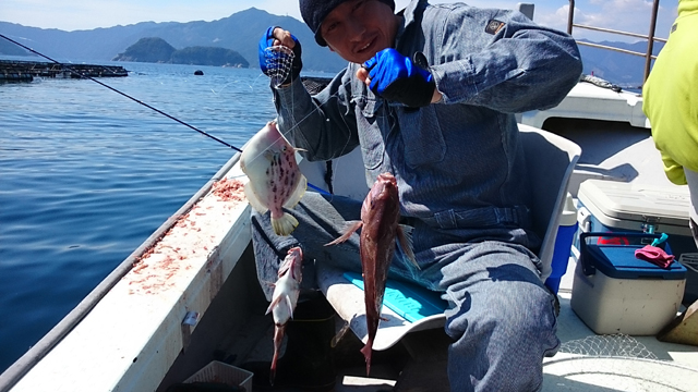 で、乗船して二時間ほど経った頃によぅやく念願の真鯛が釣れ、それから絶好調モードへと入り見事、家族全員が満足できるほどの釣果となりました(*^_^*)