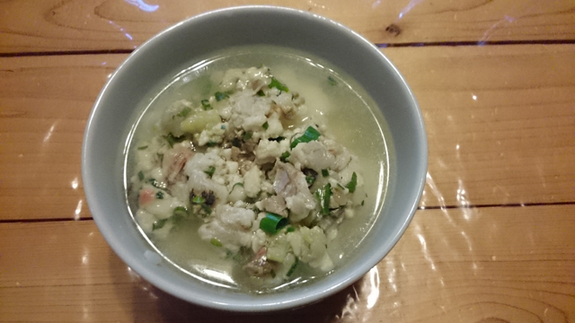 アジのたたき(なめろう)のお茶漬けデス お茶漬けと言ってもお茶ゎかけません。ほんの少し醤油と白だしを混ぜ、アジから出たダシでメチャうまです(*^_^*)
