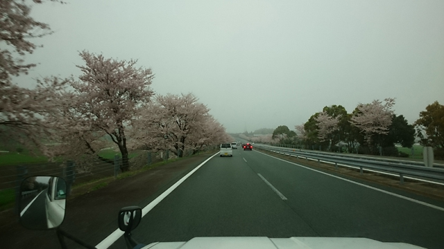 ココゎ伊勢道松阪IC付近。かなりの距離に桜が咲き誇ってます!