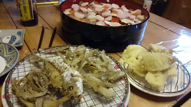 ちょっととゆぅか刺身の皿が、かなり大き過ぎましたが(^_^;) キスの刺身ってホンマ甘くて美味しいんですョ 天ぷらも釣りたてだからホンマ最高(*´▽`*)