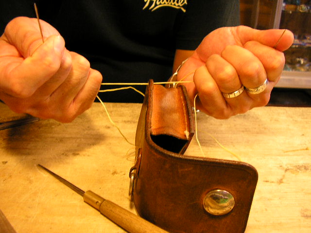 私には到底出きそぅに無い場合は友達の革屋へ送って直してもらいますが、私も一応革の道具も持ってますから出きる事はヤリます。