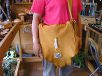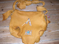 オーダー主の“Fさん”メッチャお気に入りのバッグでして、アクセントにバックル改のコンチョをあしらい、その上に当店ご自慢のフェザーTOPを大小付け鹿紐にビーズとバッチリきめてます