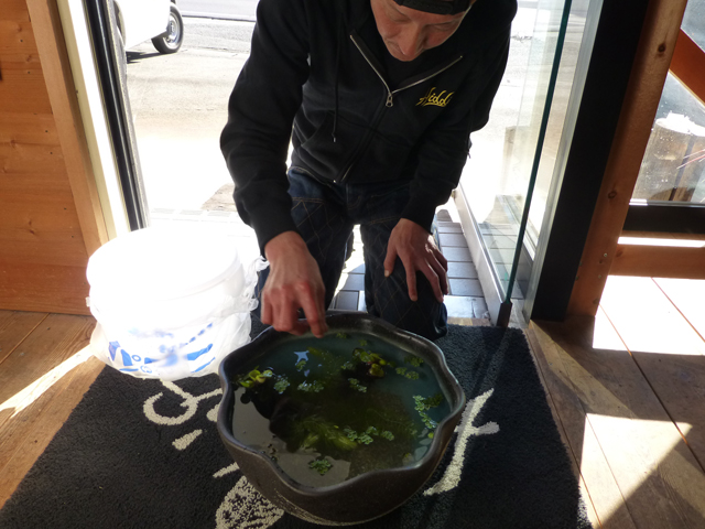 わざわざ睡蓮鉢も購入してくれて(信楽焼なんだとか)砂やら水に水草まで用意してくれて!