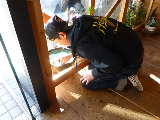 でもって最近ゎ「メダカを飼い始めました!」と(@_@。メダカを天ぷらにして食べるのか、はたまたメダカに変態的なことを考えてるのか定かでありませんが・・・しかも飼育の為の睡蓮鉢にも拘り始めたとか!