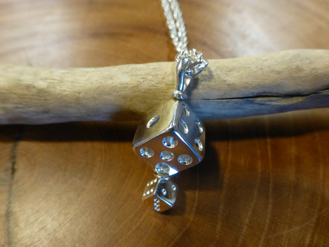 ダイスのペンダントTopです。以前にもダイスを作りましたが今回のゎ中が空白のスケルトンとでも呼びましょうかネ で、その下にも小さなダイスをくっ付けてみました。