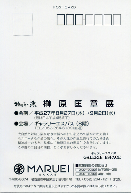 会場ゎ名古屋市中区栄、丸栄8F ギャラリーエスパスにて開催です。期間ゎ平成27年8月27日(木)~9月2日(水)です。
