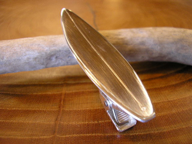 お父さんがサーファーとの事で、サーフボードのタイピンです。厚みを持たせて立体感を作り、そして豪華さをプラスし、リアリティーを追求してみました。