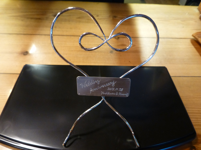 ハートと無限の形を繋げてあるんですョ よくもまぁ~思いついたモンですネ 愛が永遠に続くことを祈りつつ立体感をだし、メモリアルプレートを付けてと。