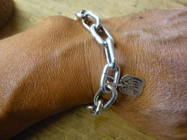 コレ着けてから、もぅかれこれ約18年くらいかな? 製作当時ゎまだ彫金教室に通ってて。色んな物を作ってたんですけどネ ブレスレットが欲しくって一生懸命作ったのがサメの歯をモチーフにしたブレスレットだったんデス。でも・・・