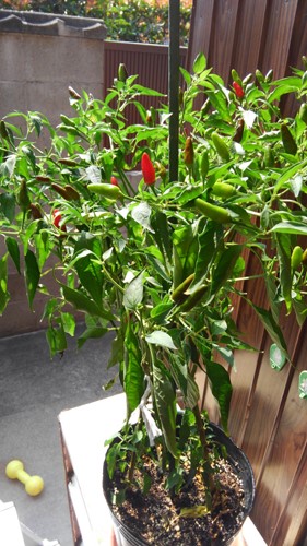 乾燥させて鷹の爪になりますネ^m^ コの緑や赤色の発色が朝日に照らされてとても綺麗なんですョ^m^
