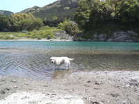愛犬連れて川に行って弁当食べながら