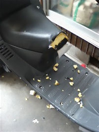 最初はフェンダーの先をガジガジして多少色が剥げる程度でしたから、まだマシでしたが・・・