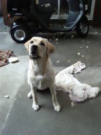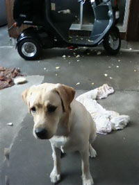 見て下さい、庭に散らばる食い散らかしたスポンジの数々・・・ それも・・・何のスポンジや思いますか やってはイケない物の中でも特に絶対ダメな物に手を付けました・・・