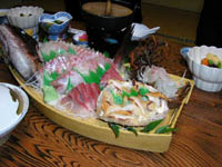 見にくいですが伊勢海老に鮑の刺身デス腹一杯になり、屁でもこいてんでしょうか