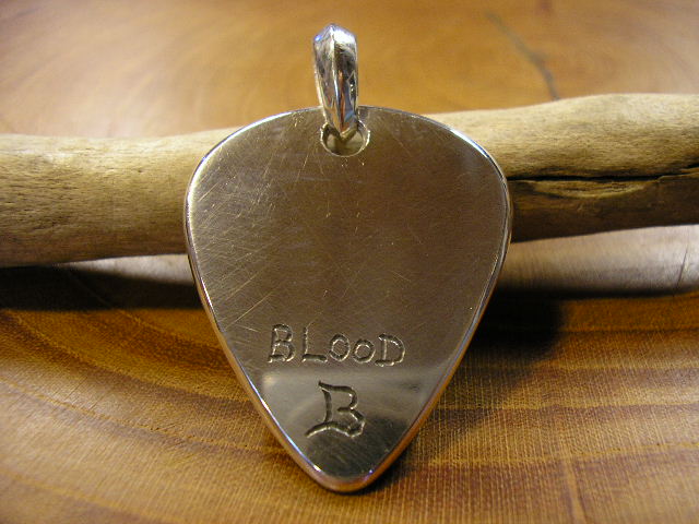 ギターのピックのペンダントTOPデス 形が単純な程、作業は難しいんですョ 左右均等に切り出して削らないといけませんからねぇ