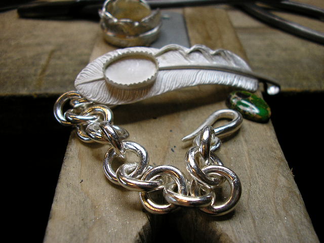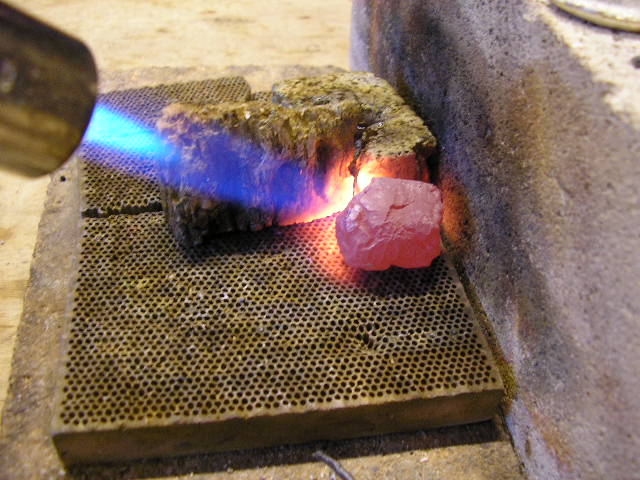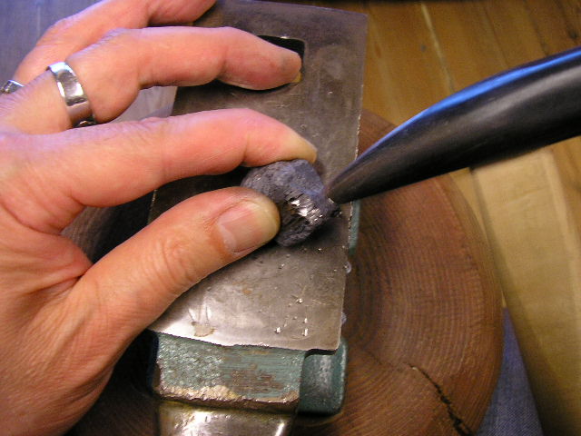以前から、したためて置いたSilverの塊(約70gメチャ重い)を熱しながら(ナマシ作業)溶けた所で形を、ある程度整えます。